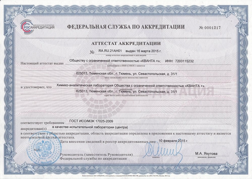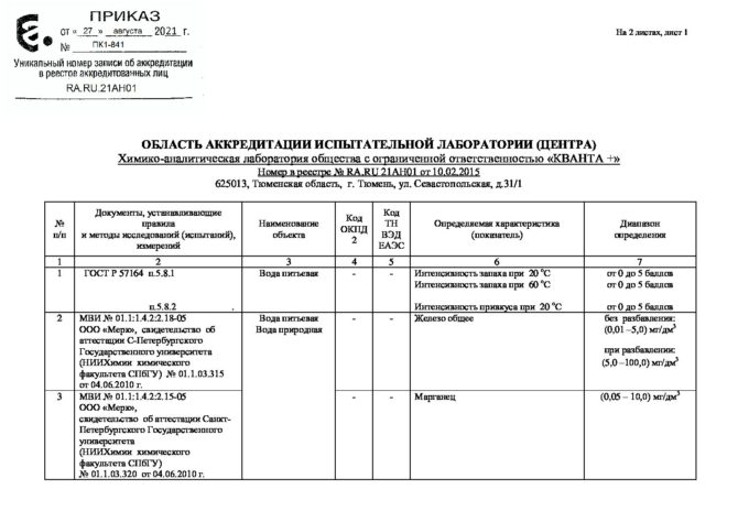 Собственная химико-аналитическая лаборатория ООО «КВАНТА +» позволяет не только подбирать оборудование для очистки воды, исходя из индивидуальных потребностей каждого заказчика, но и контролировать качество работы установленного оборудования, вести мониторинг состояния городской водопроводной воды, а также проверять и совершенствовать новые технологии по водоочистке.