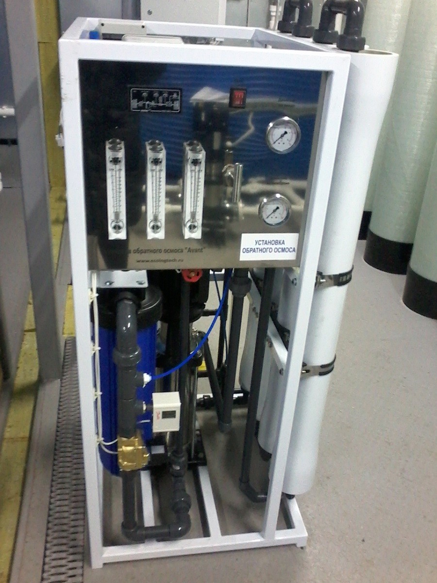 Далее часть расхода воды для более глубокой очистки подается на мембранную обратноосмотическую установку.
