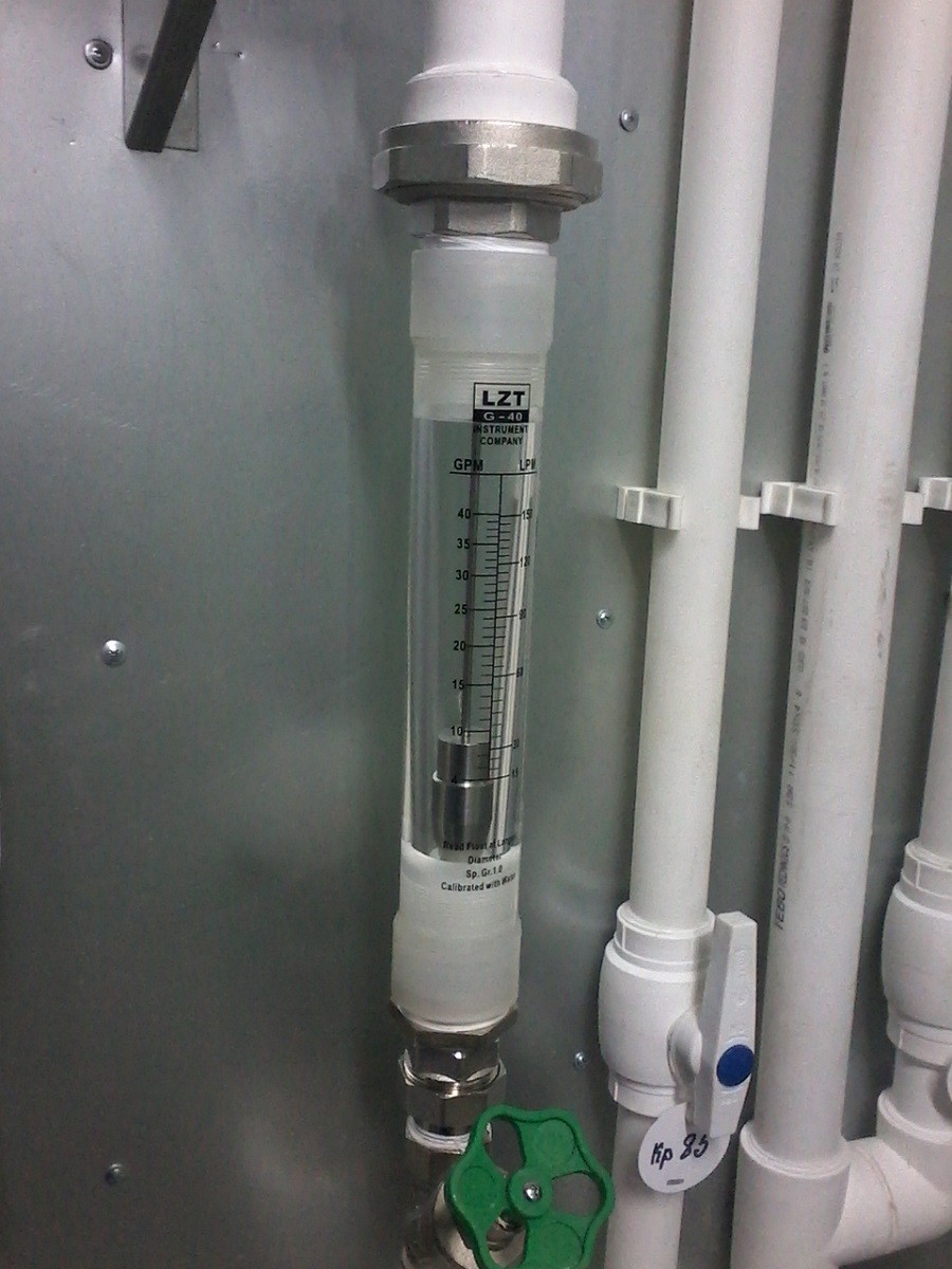 Смешение расходов после установки обратного осмоса и блока обезжелезивания осуществляется в резервуарах чистой воды РЧВ. Для регулирования потоков предусмотрены ротаметры.