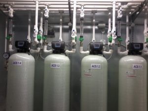 Следующая ступень – блок фильтров обезжелезивания, предназначенный для более эффективной очистки воды, в том числе по органолептическим показателям. Блок также состоит из 4-х параллельно работающих фильтров с автоматическими управляющими клапанами.