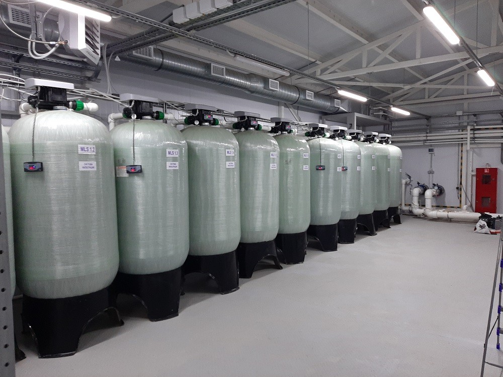 После фильтров осветлительных предусмотрены фильтры сорбционные. Данная ступень предназначена для улучшения органолептических качеств хозяйственно-питьевой воды. Затем вода подается в резервуары чистой воды РЧВ. Оттуда вода через установки УФ обеззараживания подается потребителю.