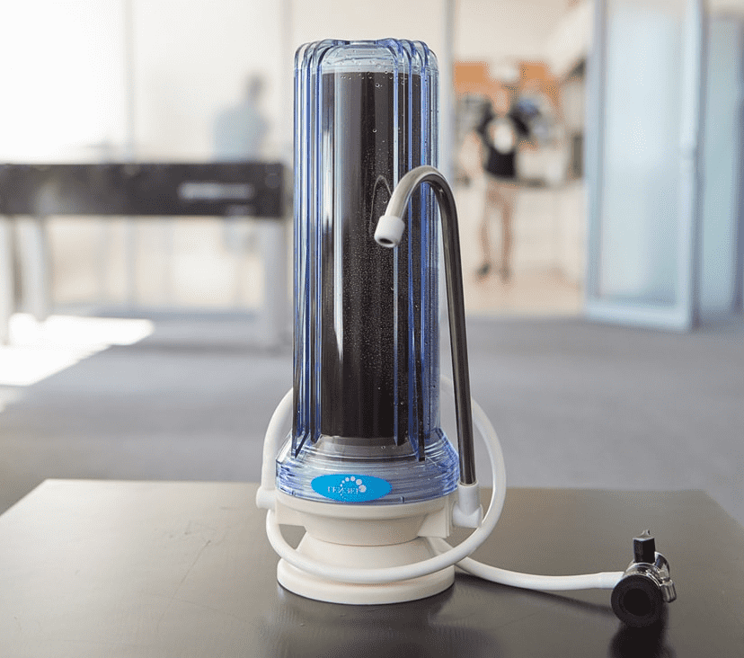 Вода из-под крана заливается в верхнюю емкость настольного фильтра. После этого жидкость под действием силы тяжести стекает в нижнюю емкость, проходя через слои фильтрующих картриджей. Вода избавляется от примесей, запаха и цвета, умягчается и становится пригодной для употребления. По мере того, как картриджи перестают справляться со своей задачей, их заменяют на новые.