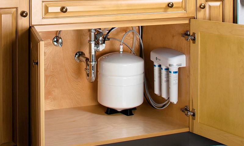 Эти приборы отличаются компактностью и малыми габаритами в сочетании с высокой эффективностью. Они состоят из емкостей с фильтрующими патронами, которые последовательно соединяются и устанавливаются под раковиной. Кроме фильтровальной системы требуется вмонтировать дополнительный кран, через который будет отводиться очищенная вода.