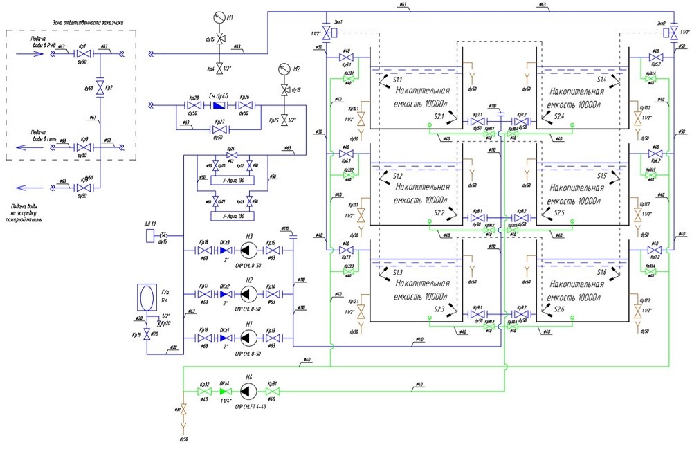 - Гарантированныцй напор на выходе со станции: 30 м в.ст.