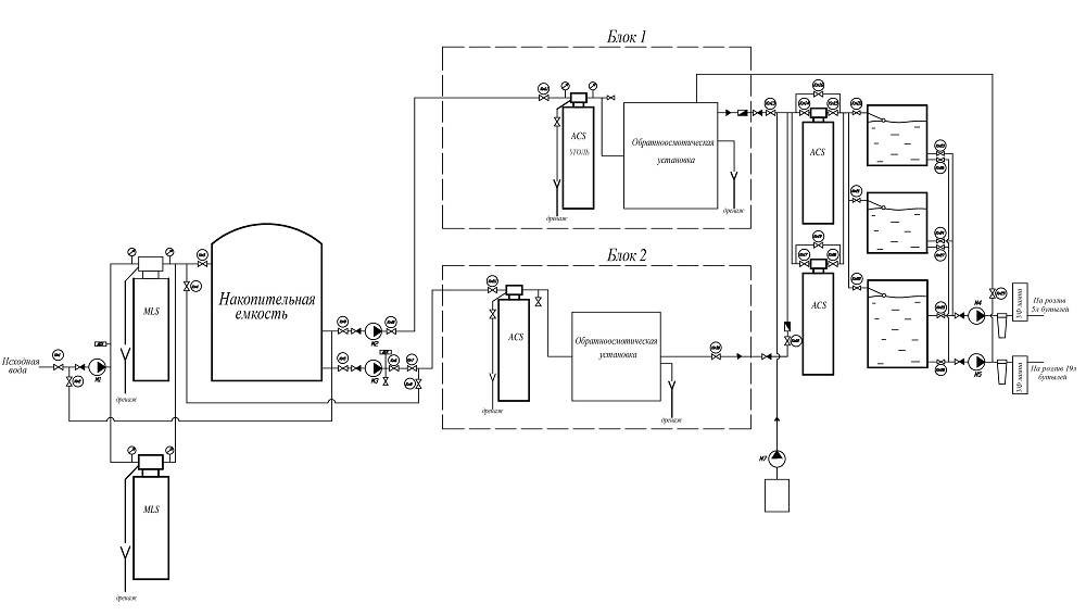 Задача объекта: подготовка воды для бутилирования (розлива)