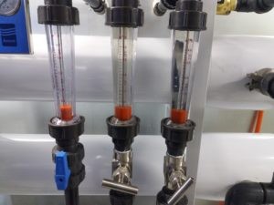 Смешение расходов после установки обратного осмоса и сорбционных фильтров осуществляется в резервуаре чистой воды. Для регулирования потоков предусмотрены ротаметры.