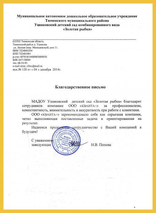 Отзывы заказчиков КорпоративныеЧастные Детский сад №127 города ТюмениУшаковский детский сад комбинированного вида «Золотая рыбка»ООО «Трубный завод «СИБГАЗАППАРАТ»ОАО «Сибирский научно-аналитический центр»ООО «Гостиница Соловьиная роща»Управление делами Тюменской областной Думы« Назад12345Вперед »