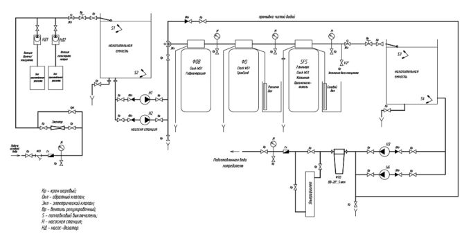 Далее обработанная вода при помощи насосной станции Н1 (Н2) подается на трехступенчатую фильтрацию
