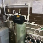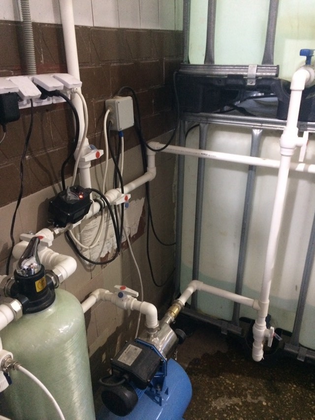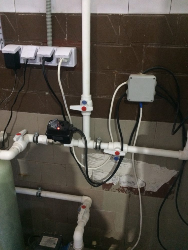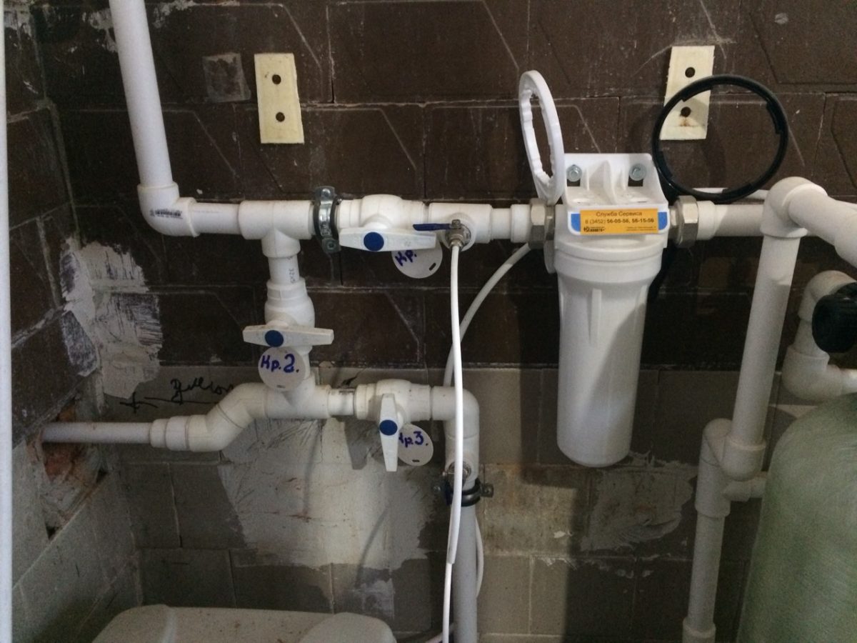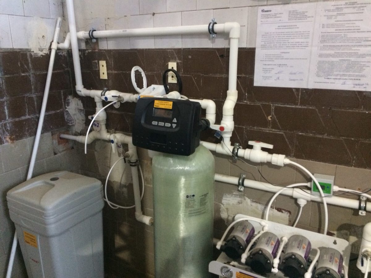 Исходная вода при помощи насосной станции повышения давления через предварительный механический фильтр картриджного типа подается на ионообменную систему.