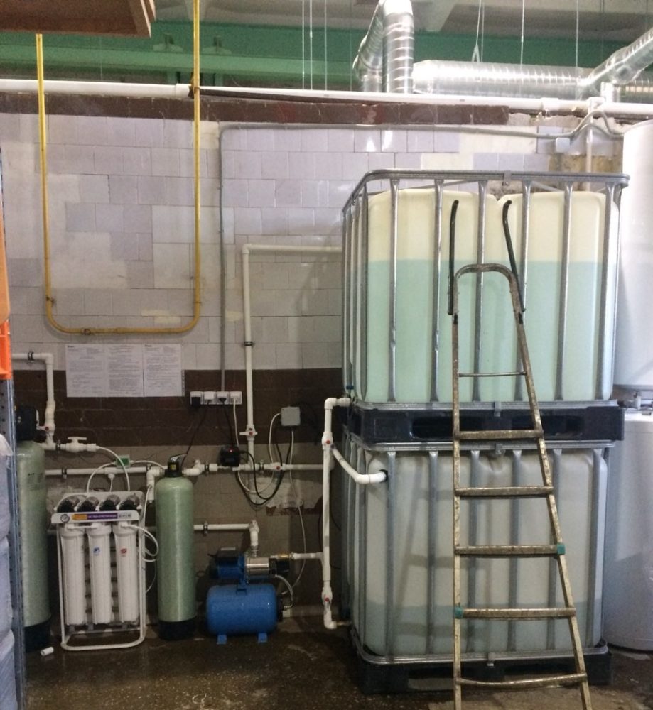 Для снижения общего солесодержания предусмотрены мембранная обратноосмотическая установка и система коррекции электропроводности. Далее подготовленная вода поступает в накопительную емкость, откуда насосной станцией забирается непосредственно на производство.