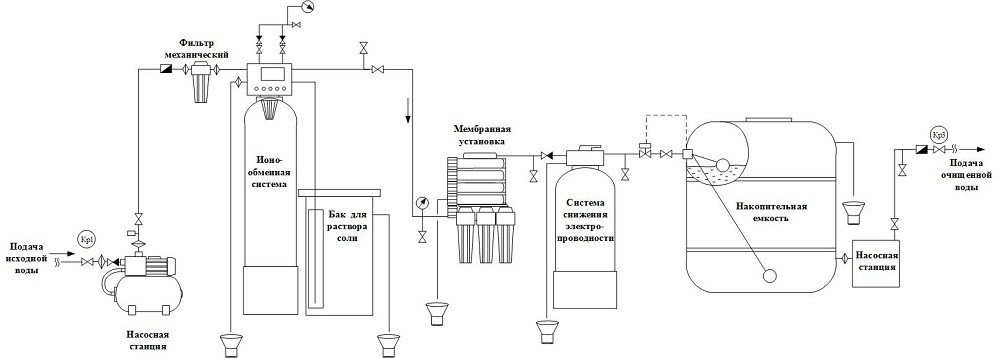 Принципиальная схема системы очистки воды:
