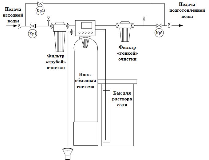 Принципиальная схема системы очистки воды: