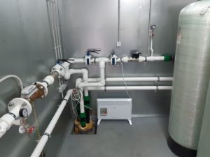 Затем очищенная вода через дисковый фильтр «тонкой» очистки подается потребителю через уже имеющийся у заказчика блок УФ обеззараживания. Во время промывки любого фильтра подача воды в резервуары очищенной воды (РЧВ) прекращается, для этого предусмотрен 2-хходовой автоматический вентиль JES.
