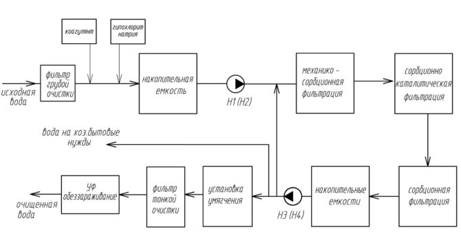 Задача объекта: очистка воды поверхностного водоисточника для хоз.-бытовых и питьевых целей