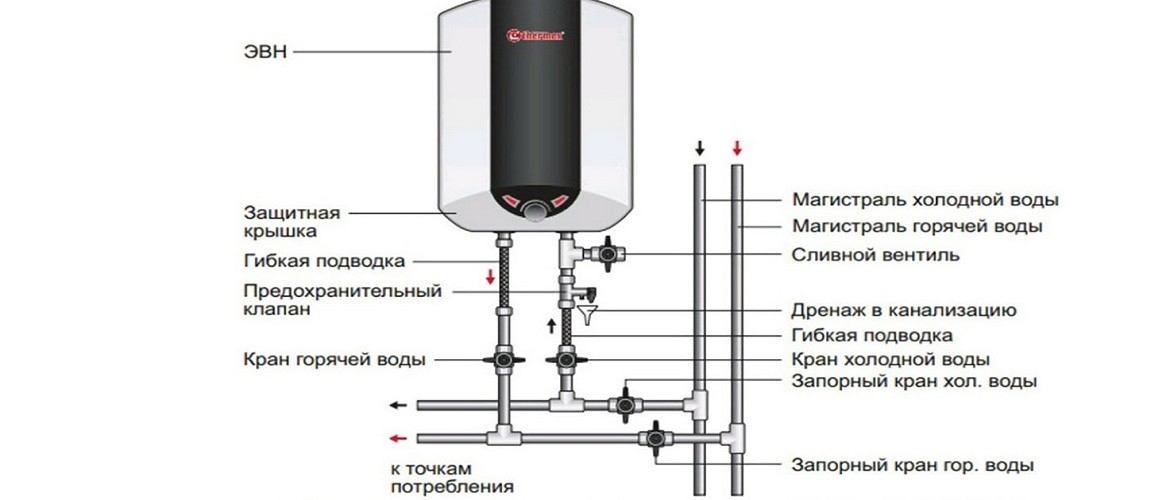 - Подключать бройлер к водопроводным трубам можно только с использованием предохранительных элементов.