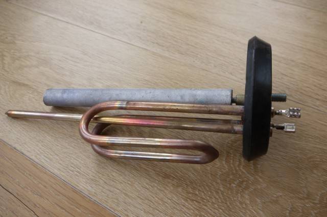 Известковые отложения образуются на поверхности греющего элемента из-за неисправности анода. Потому, выполняя замену ТЭНа, нужно убедиться в работоспособности магниевого стержня.