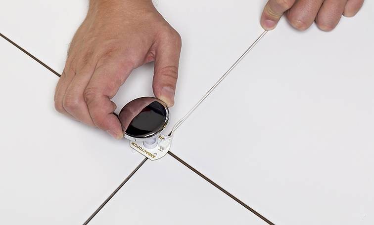 Для соединения датчиков между собой применяют последовательное соединение специальными монтажными проводами. Они имеют малый диаметр, и это позволяет маскировать их между плитками, уложенными в ванной комнате.
