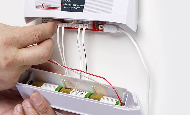 - Блок бесперебойного питания, в нем располагают батарейки. Они обеспечивают энергией работу системы.