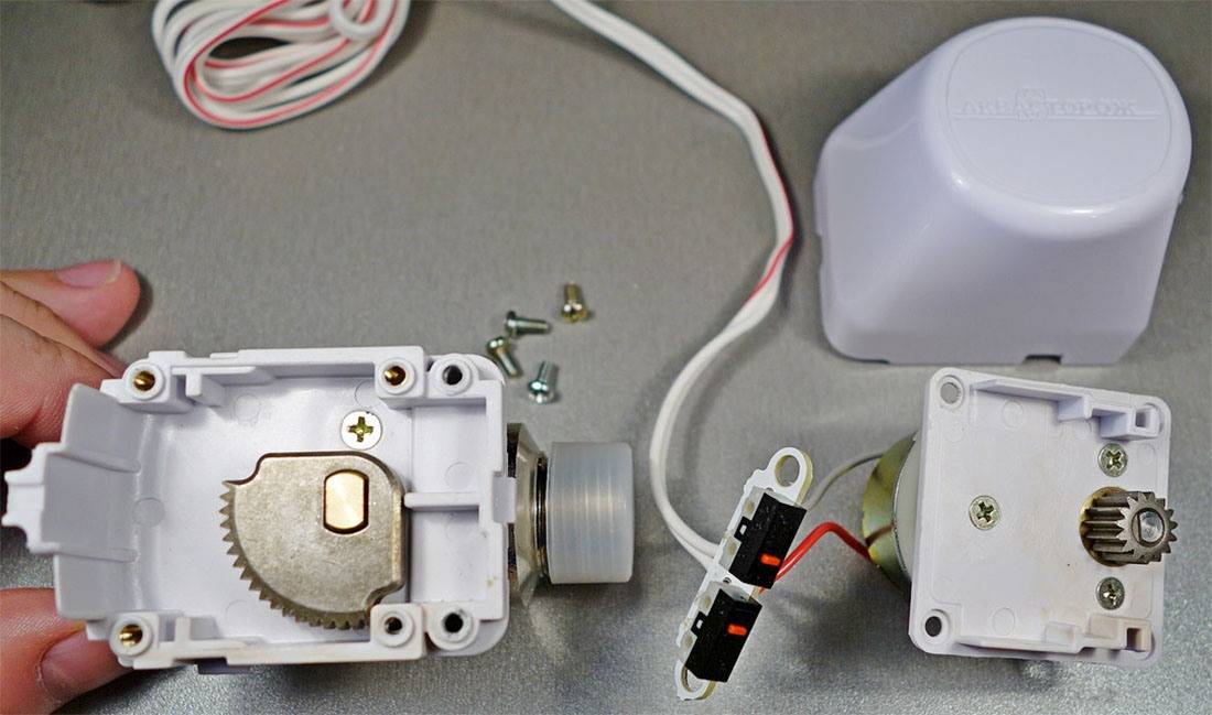 Датчики формируют и транслируют сигналы на управляющий контроллер. Он после проведения анализа сложившейся ситуации принимает решение о блокировке подачи воды в квартиру или частный дом, в результате поступление воды прекращается, и прорыв ликвидируется. Для выполнения команд контроллера в трубопроводную систему, точнее на ее входе, устанавливают шаровые краны с электрическим приводом.